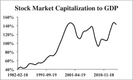 Warren Buffett once famously stated that his favorite means of valuing stock was the stock market capitalization to GDP ratio.