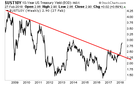 Buckle up, because Treasury yields are exploding higher having broken their long-term trendline.
