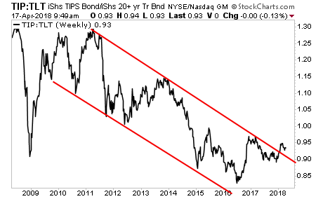This has unleashed inflation... You can already see it in the bond market where the Inflation/Deflation ratio has broken out of a 10 year deflationary downtrend.