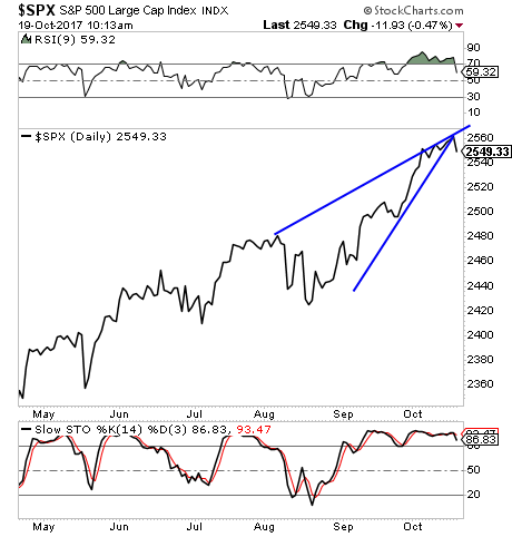 For months we've been climbing steadily in a tighter range. Stocks have been BEYOND overbought having gone 300 days without even a 3% pullback.