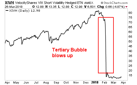 The Tertiary Bubbles were bubbles based on particular investing strategies in stocks. I'm talking about "shorting volatility" and "risk parity" fund strategies.
